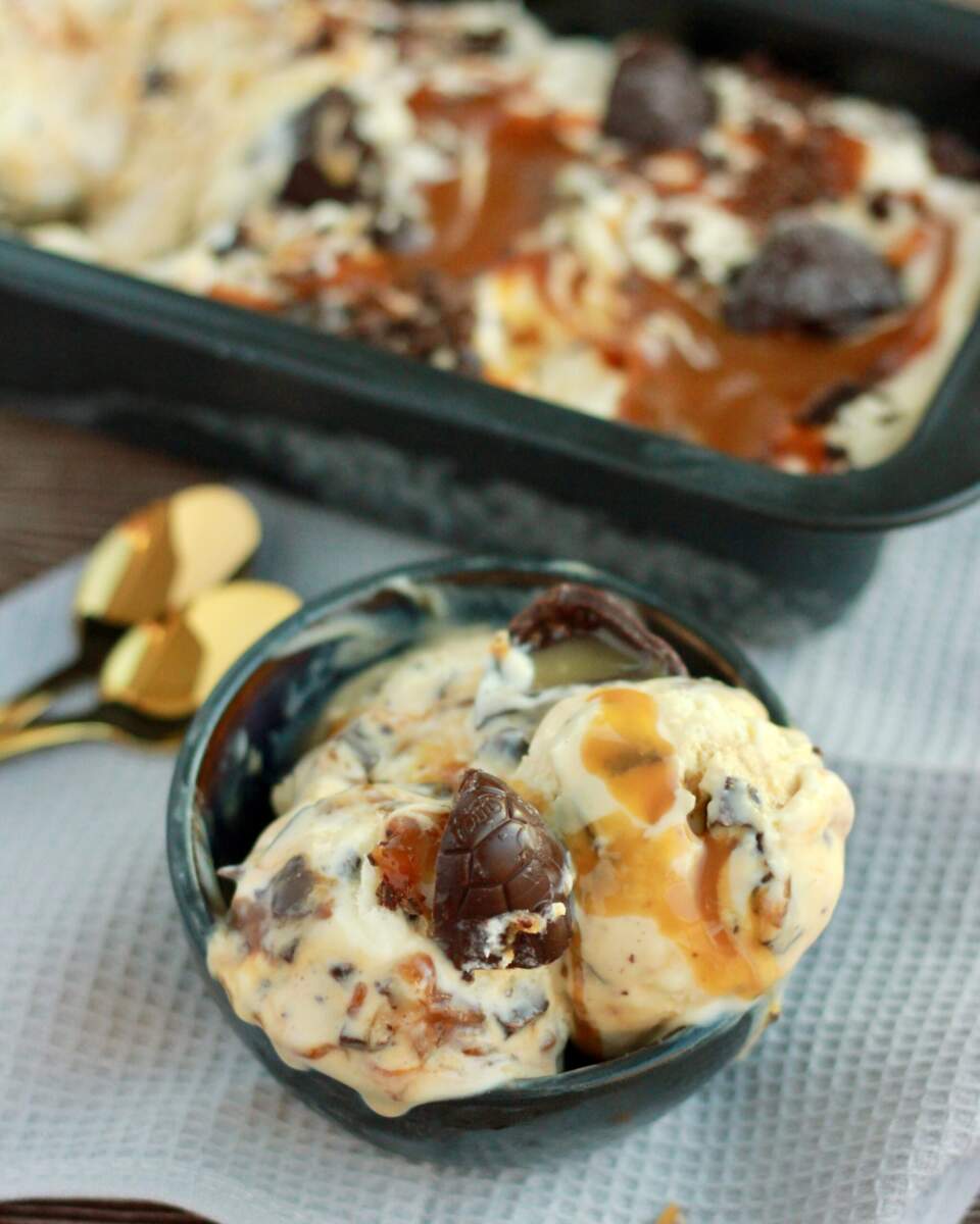 Hjemmelavet skildpadde is er en rigtig hyggelig dessert, som både er nem at lave og smager dejligt af karamel og chokolade. Isen her er lavet uden ismaskine, og kræver derfor ikke andet end et par skåle, en håndmixer og lidt tålmodighed, mens den sætter sig i fryseren.Skildpadde is er inspireret af de klassiske chokolade skildpadder med flydende karamel og romsmag – og det passer bare virkelig godt sammen i en cremet is. Denne opskrift på skildpadde is er lavet med kondenseret mælk og fløde, som giver en blød og lækker konsistens, selv uden brug af ismaskine.Hvis du aldrig har prøvet at lave hjemmelavet is uden ismaskine før, så er det her et godt sted at starte. Det er enkelt og kræver få ingredienser. Du får både den søde karamelsmag og chokoladestykkerne i hver eneste skefuld.Hjemmelavet is med kondenseret mælk er en nem genvej til is, der smager som noget, du sagtens kunne have brugt lang tid på – men i virkeligheden er den hurtigt rørt sammen og bare sat på frys. Og skildpadde is uden ismaskine er en god opskrift at have i baghånden, når du gerne vil lave en god isdessert uden at skulle investere i en ismaskine.Prøv denne skildpadde is næste gang, du får lyst til hjemmelavet is – den er både nem, hurtig og virkelig lækker!